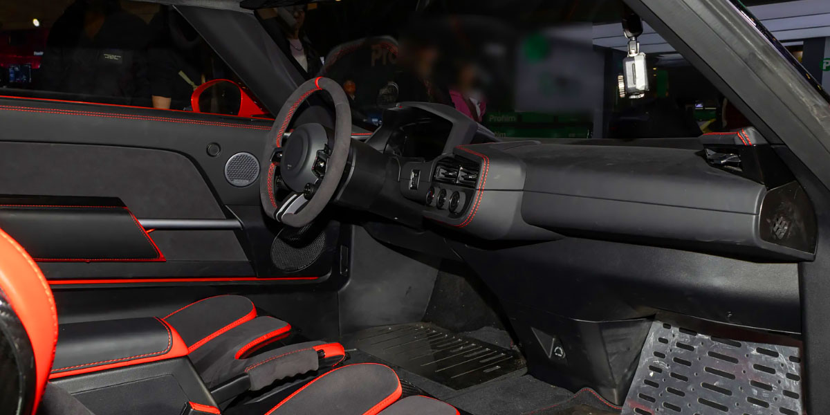 Inside, the cockpit stays focused. A single LCD cluster replaces large infotainment displays. Physical switches manage climate and core functions. Carbon fiber bucket seats support aggressive driving and accept multi point harnesses. The driver seat shifts 6 cm toward the centerline, improving balance and steering alignment. Materials favor function over ornamentation.