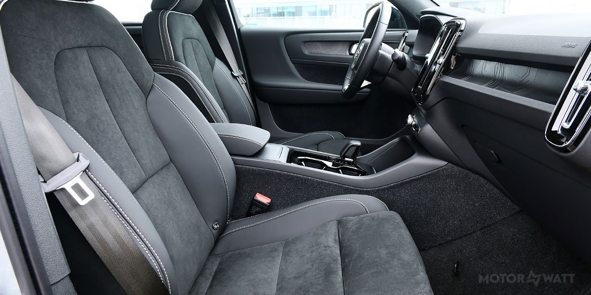 The EC40’s Twin Motor AWD trim delivers 408 hp (304 kW) and 487 lb-ft (660 Nm) of torque, launching from 0–100 km/h in just 4.8 seconds. Optional software boosts output to 442 hp (330 kW). It's not a sportscar, but it pulls hard and rides comfortably with Volvo’s predictably calm steering.