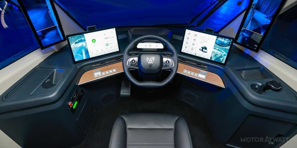 The cab has a drag coefficient around 0.2755, helping stretch that range further. It’s a unibody design built in partnership with Higer Bus and JAC, offering configurations in 6×4, 4×2, and soon 6×2 layouts for regional compliance. The stance screams utility, functional over flashy, but still futuristic in silhouette.