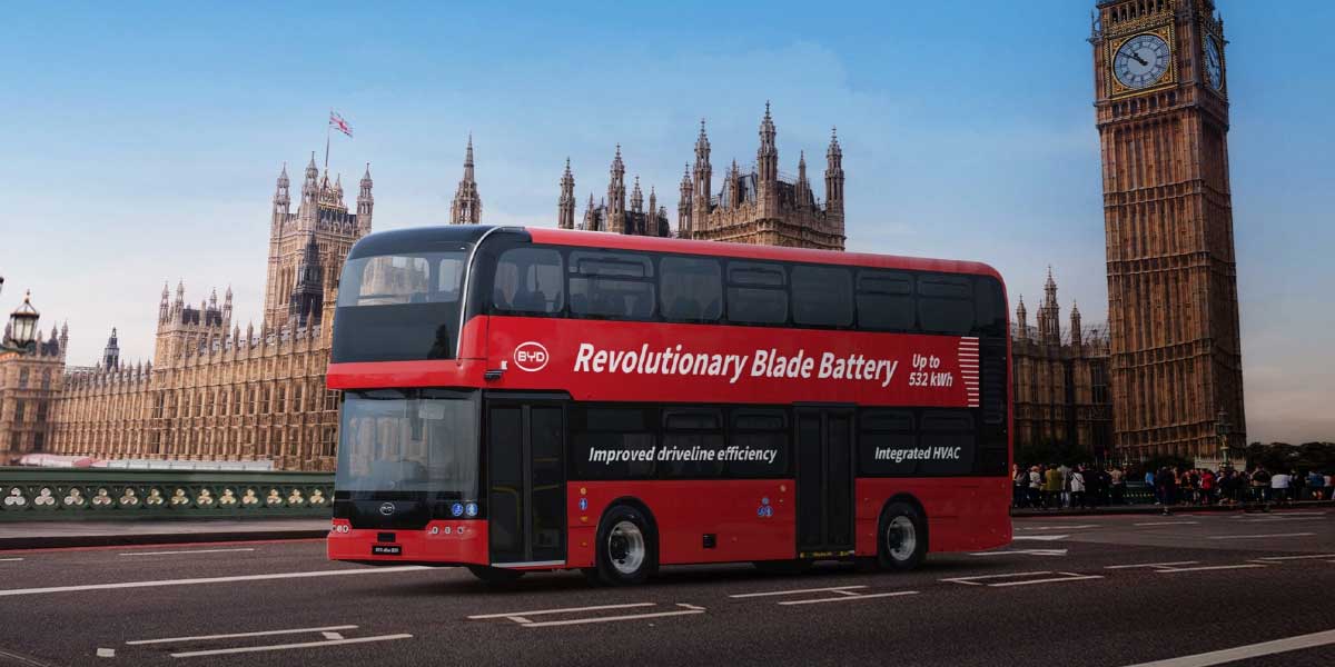 BYD has unveiled its latest all-electric double decker bus, the BYD eBus BD11 double decker, tailored specifically for the UK market. The BD11’s design is a step forward from previous models, with Blade Battery modules integrated directly into the chassis – a cutting-edge innovation seen in BYD's B12 model showcased at Busworld 2023. Set to revolutionize public transport in London, this bus is set to enter service by the end of the year, with a provincial version following shortly.