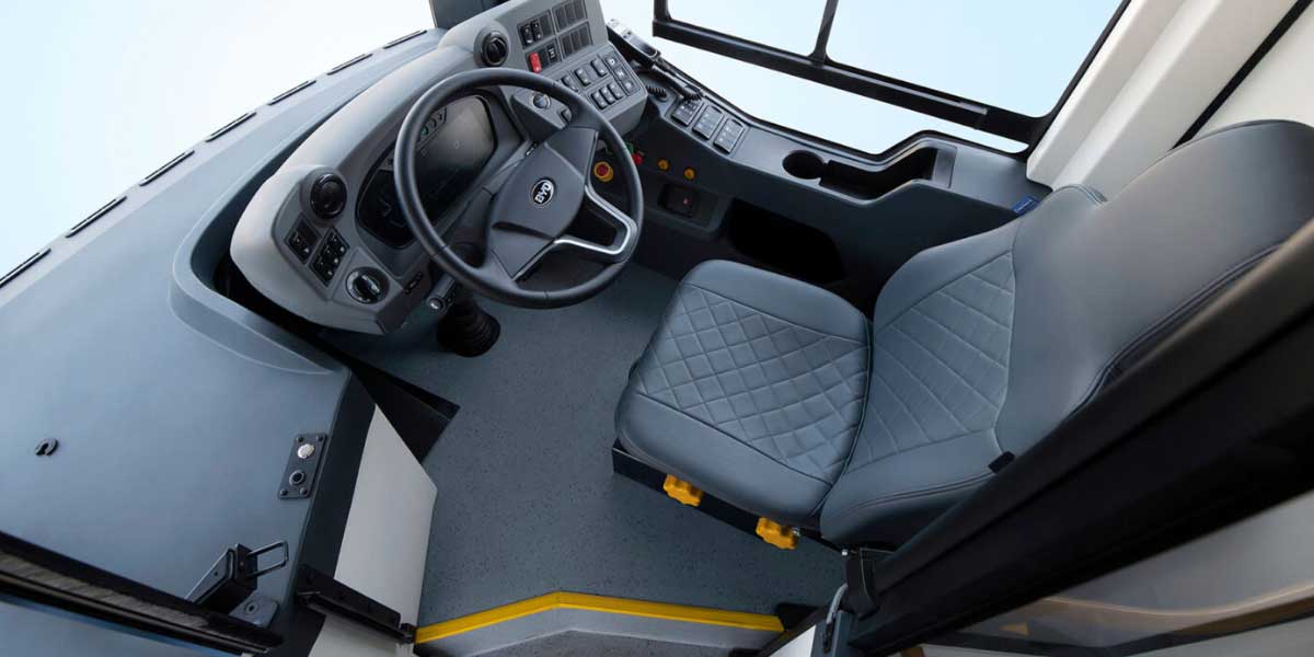 The e-bus is equipped with Advanced Driver Assistance Systems (ADAS) including AEBS, BSM, FCW, and ISA, ensuring enhanced safety and operational security.