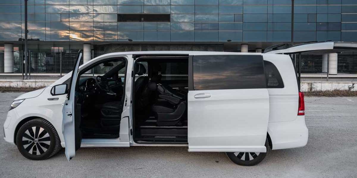The EQV 300 Extra Long’s 90 kWh battery tops up in around 8 hours using a standard 240V outlet. The Tesla Model X boasts a rapid 30-minute charge to 80% with its Supercharger network. The Rivian R1S takes about 9 hours for a full charge, while the Nissan e-NV200 also requires around 8 hours, albeit for a smaller battery.