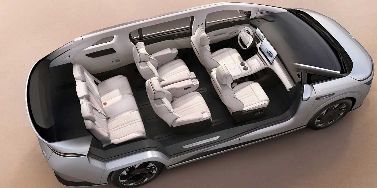 Boasting a futuristic 'starship design' philosophy, the X9 harmonizes sleek aerodynamic efficiency with a stunning drag coefficient of 0.227, a remarkable achievement considering its grand dimensions. Stretching nearly 5.3 meters (17.4 feet), the X9 offers a 2+2+3 seating arrangement across three rows, providing ample space for passengers and cargo alike.