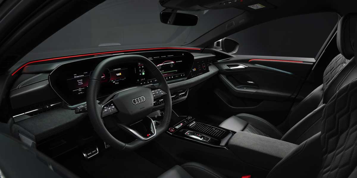 The Audi S6 Sportback e-tron impresses with its state-of-the-art technologies. Featuring a low drag coefficient of 0.21, aerodynamics are optimized for better performance. The cabin includes a panoramic roof, folding side-view cameras, and advanced OLED lighting. The curved OLED panel acts as the hub of the digital dashboard, combining an 11.9-inch driver's display and a 14.5-inch main touchscreen. Additionally, Audi's voice assistant, capable of integrating with ChatGPT, ensures a seamless user experience. With augmented reality displays and customizable light signatures, the S6 Sportback is built for modern tech enthusiasts.