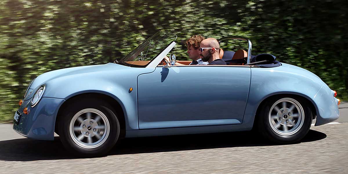 Mimicking the legendary silhouettes of Porsches and Spykers, the TC2 radiates a vibe of yore, with sleek lines, compact dimensions, and a stripped-back aesthetic. It stretches out to 3.54 meters in length, parks within a width of 1.58 meters, and stands 1.22 meters tall.