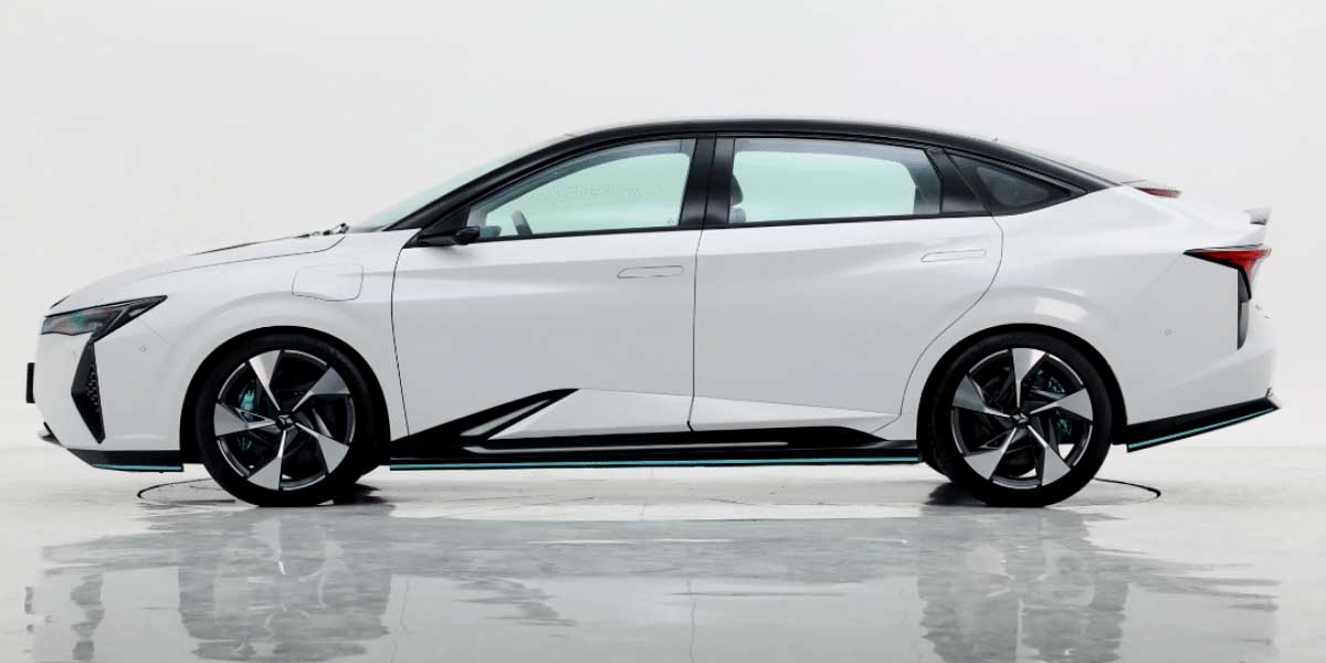 The Dongfeng-Honda Lingxi L offers a range of 520 km on a 60 kWh battery, reaching a maximum speed of 160 km/h. This sedan, made in China, is tailored for the young audience with a two-tone body, vertical LED strip, and innovative digital mirrors.