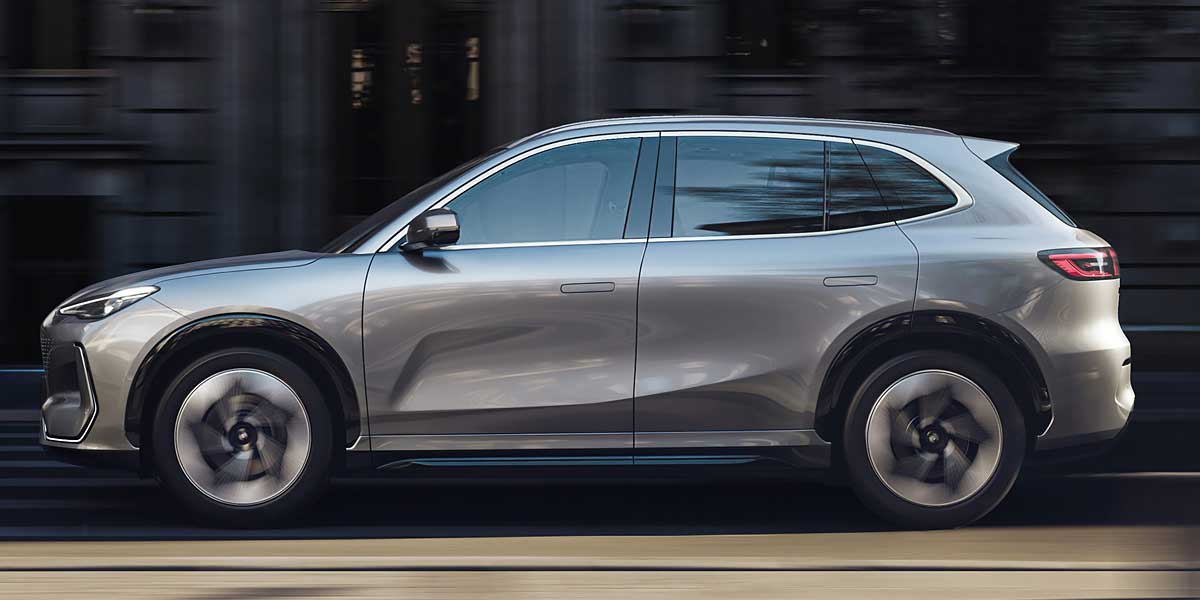 The side profile of the E5 is sleek with dynamic body stampings, while the rear is accentuated by striking lights connected via dual LED strips. Currently, the vehicle is available exclusively in a rear-wheel-drive configuration.