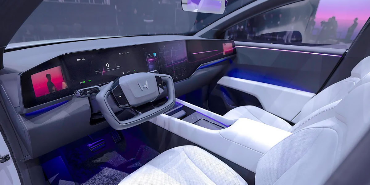 Single motor rear wheel drive layout producing 241 hp. 78 kWh battery targets 300 miles or 482 km of range. ASIMO OS manages infotainment, driver assistance, and energy flow. Focused on efficiency and interior space.
