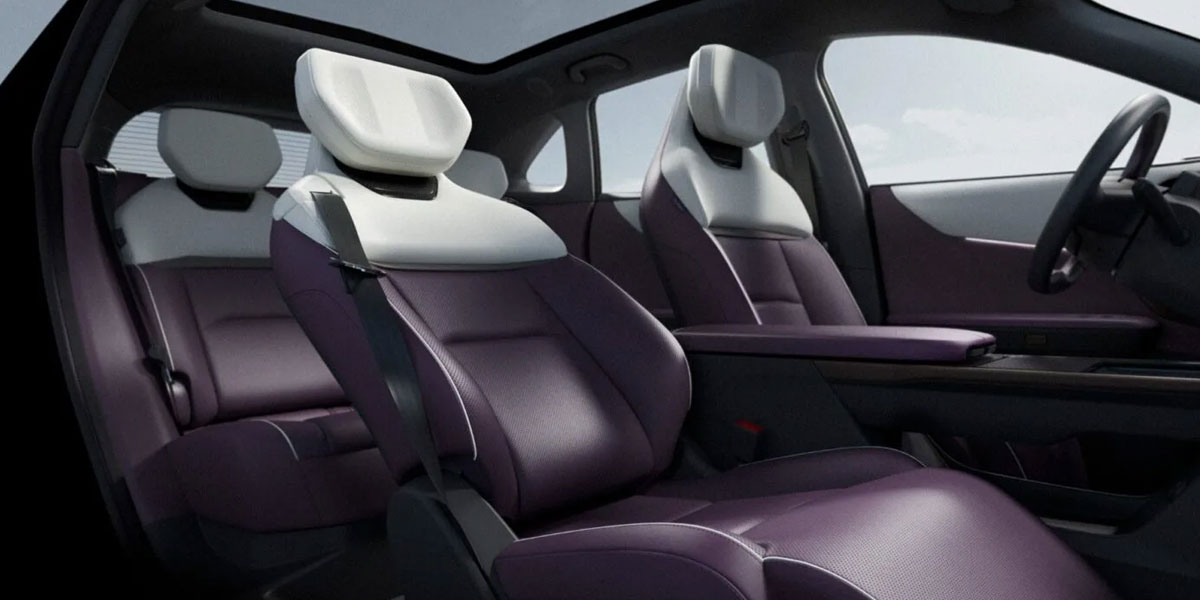 Inside is where things get wild—Mazda ditches its usual minimalism for a screen-heavy tech suite. A 26.45-inch 5K ultra-wide display dominates the dash, complemented by a 100-inch AR head-up display, plus touchscreens for the rear passengers and side mirrors. The Dolby Atmos 7.1.4 system, with 23 speakers and dual-zone listening, might make you want to sit in your driveway. Zero-gravity front seats with footrests, purple leather accents, ambient lighting, and smart gesture/voice controls push the cabin experience far beyond what the price tag suggests.