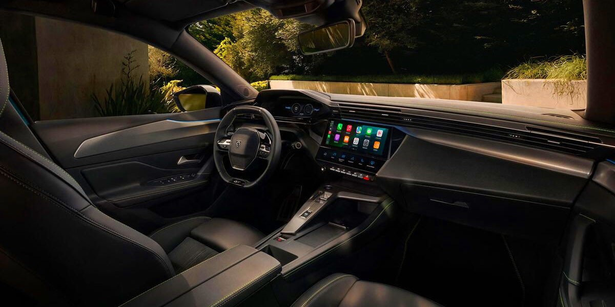 Inside, the Peugeot i-Cockpit pairs a raised 10-inch cluster with a compact wheel for a clear sightline. The 10-inch center display runs wireless CarPlay/Android Auto with over-the-air updates baked in. Configurable i-Toggles bring one-press access to climate, nav, and media. Storage remains family-friendly, and the boot swallows 12.7 cu ft (361 L). Upholstery and trim materials scale from durable cloth to Alcantara on higher grades.