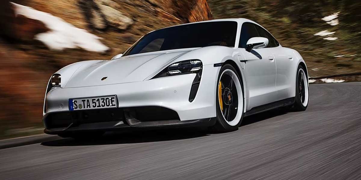 The PORSCHE Taycan Turbo S has a top speed of 200 km/h (124 mph).