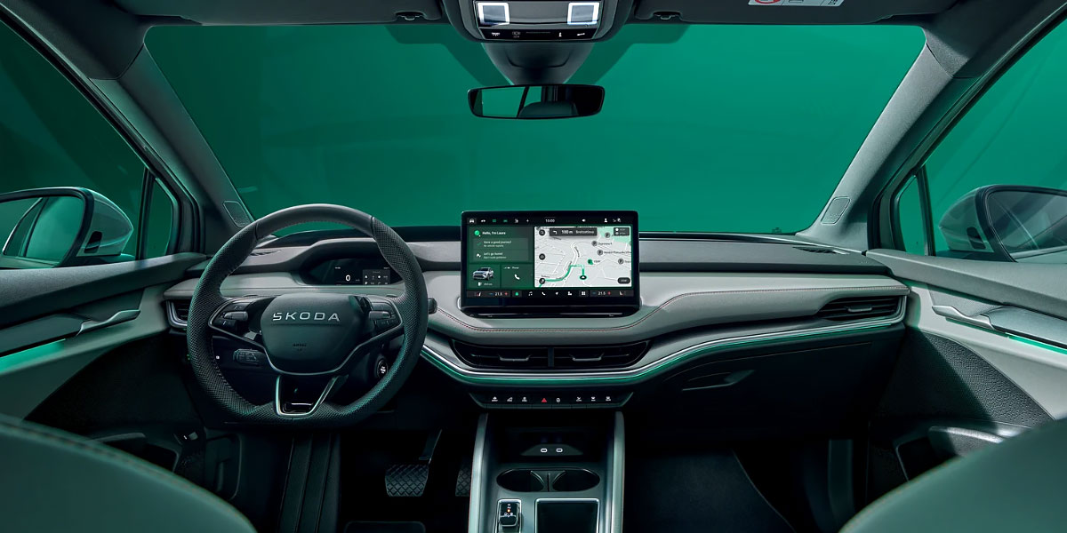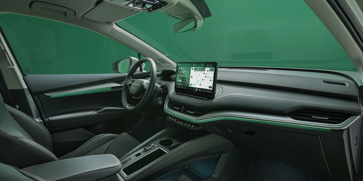 Interiors reflect thoughtful design, with a spacious cabin that comfortably seats five passengers. Beneath the modern aesthetics lies a premium infotainment system featuring a crisp 13-inch touchscreen, supported by physical controls for intuitive operation. The Simply Clever storage solutions, along with dual-level central consoles and pockets, ensure practical utility alongside avant-garde interior styling.