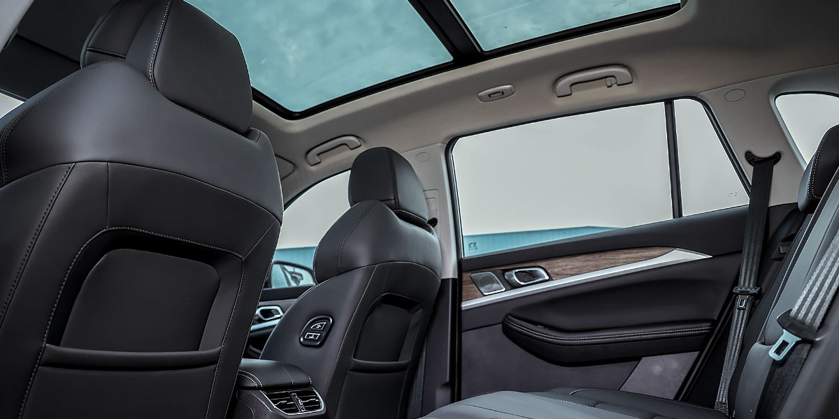 The design of the Skywell BE11 Long Range marries elegance with function in an allure that makes heads turn. Sporting sleek LED 'razor' headlights, two-tone 19-inch 'Lynx' alloy wheels, and a stylish rear complete with Skywell embossing—it's a treat for the eyes. And stepping inside, you're greeted with leather-style seating, wood-style accents, and piano black panels, all exuding a luxurious feel.