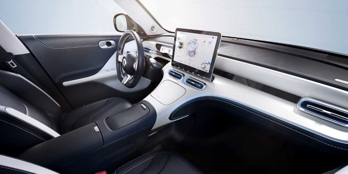 Inside its sanctum, the SMART #1 orchestrates an ambiance of comfort and opulence. Adorned with leather and ambient illumination, it fosters a milieu that's equally inviting and posh. A 12.8-inch touchscreen serves as the infotainment nucleus, alongside a 9.2-inch digital dashboard, enhancing the interactive voyage for both conductor and companions.