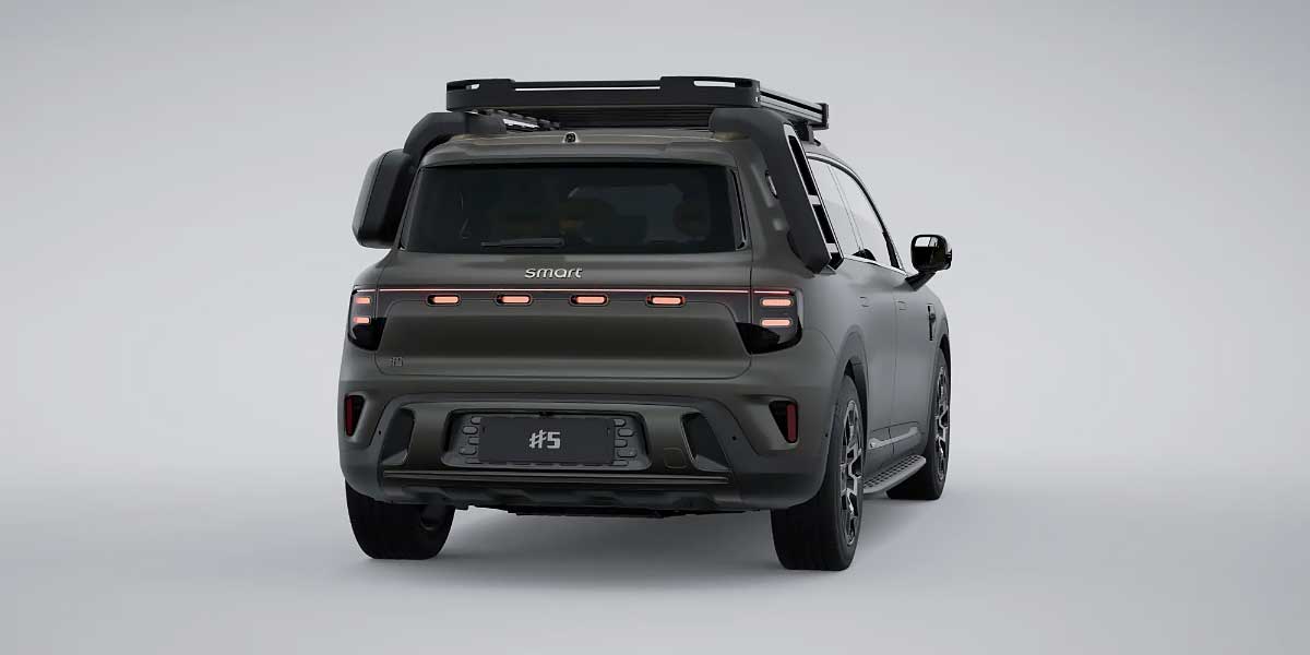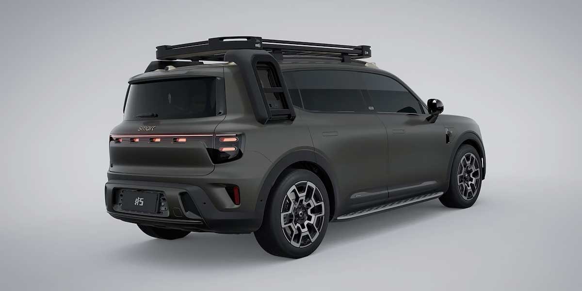 Visually tougher than its #1 and #3 siblings, the #5 trades curves for sharp, upright proportions and squared LED signatures. That 4.7-meter (185 inches) length and 2.9-meter (114-inch) wheelbase translate into real room inside. Rugged trims like the Summit Edition pile on extras like a side ladder and roof rack, nudging it closer to electric overland fantasy than suburban shuttle. The chunky D-pillar and oversized Smart badge announce its arrival—loudly and proudly.