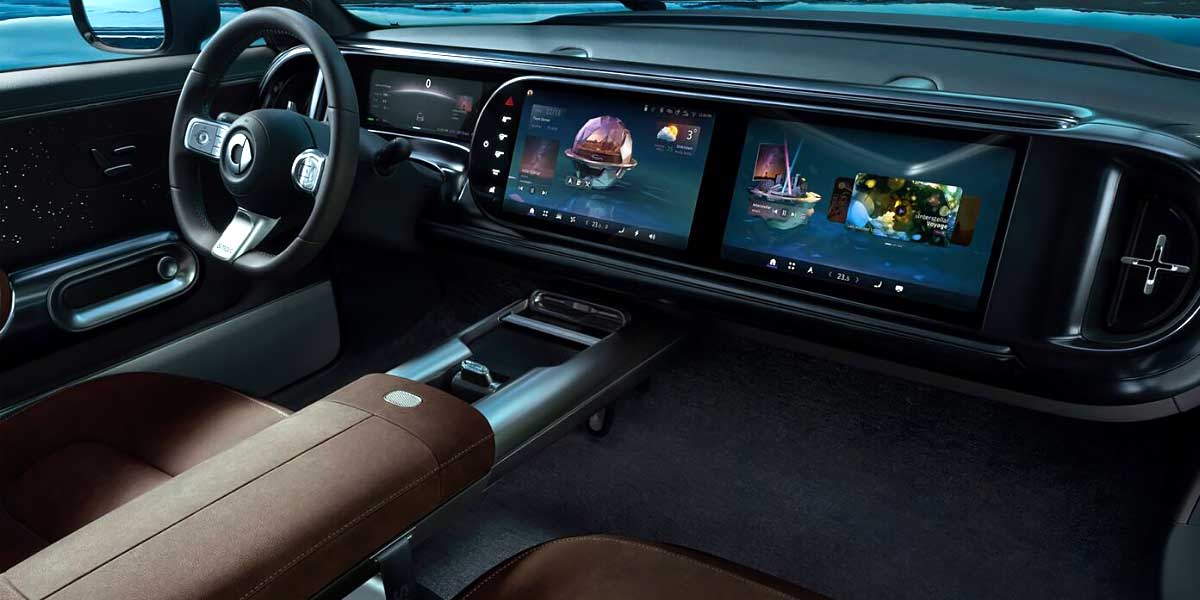 The Smart #5 features zero-gravity massage seats, a 21-speaker Sennheiser system, dual OLED screens, and ambient lighting, creating a luxury lounge-like experience for both driver and passengers.