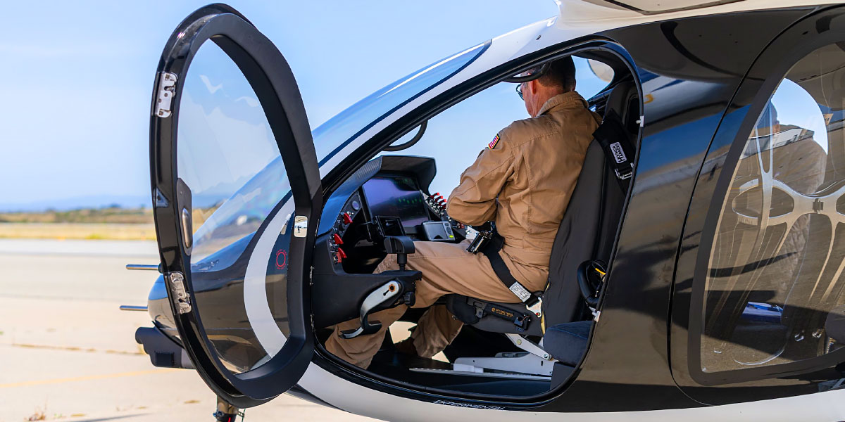 The cabin seats one pilot and four passengers comfortably. High back ergonomic seats accommodate occupants up to 193 cm tall. A unified flight control system derived from F 35B concepts replaces traditional cyclic controls. Dual inceptors simplify direction and speed management. Large primary and multi function displays present real time telemetry and weather data. Storage accommodates four carry on bags within integrated compartments.