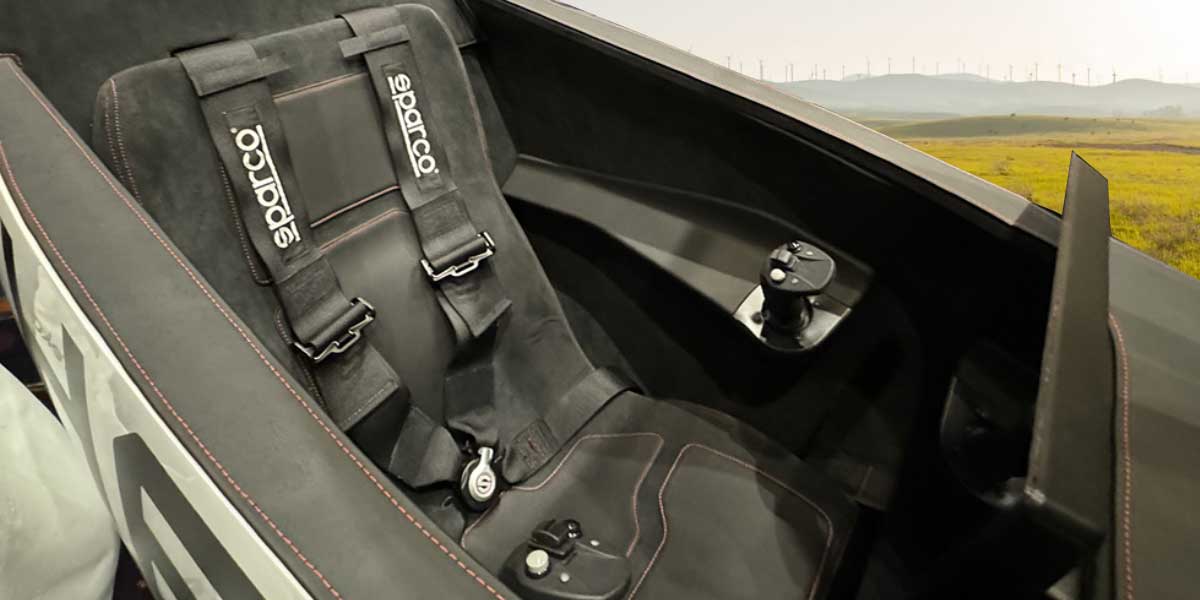 Inside, a single seat cockpit centers on ergonomic alignment and digital telemetry. A central display provides altitude, airspeed, and battery data in real time. Joystick controls mimic consumer drone logic, reducing learning curve anxiety. Triple modular redundancy in flight controllers enhances operational confidence. A ballistic parachute system adds an additional safety layer. Connectivity through a dedicated mobile app supports pre flight checks and analytics review. The result feels modern, direct, and technologically assured for a recreational electric aircraft.